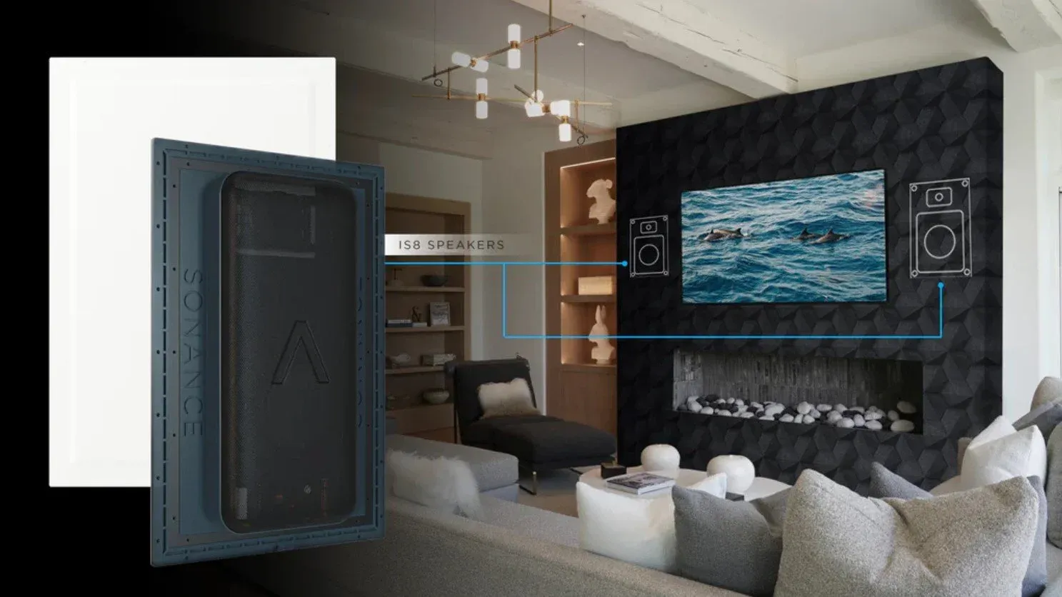 Invisible speakers sit behind the wall surface. The room stays uninterrupted while still providing full range sound. This suits homeowners who want premium audio without exposed equipment.